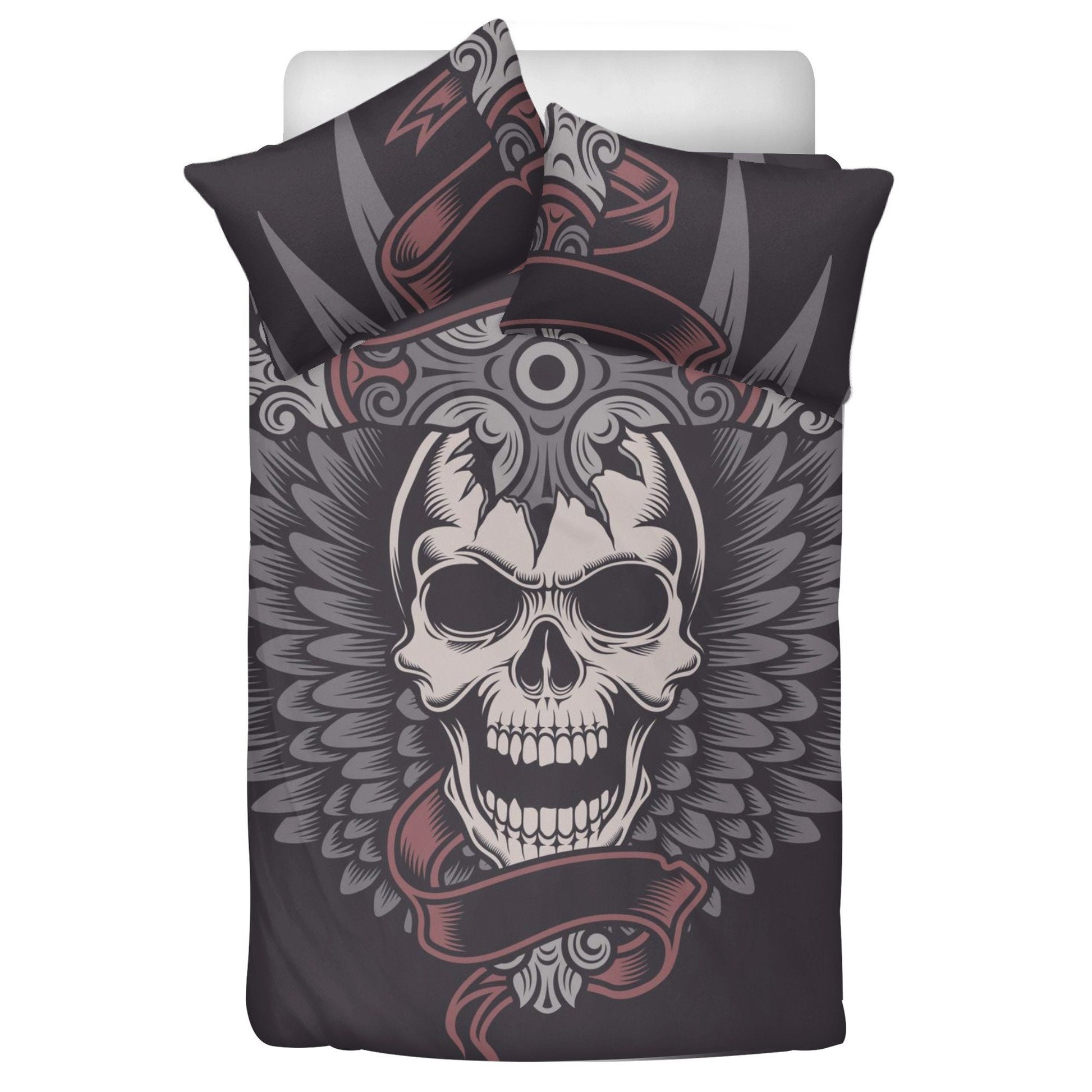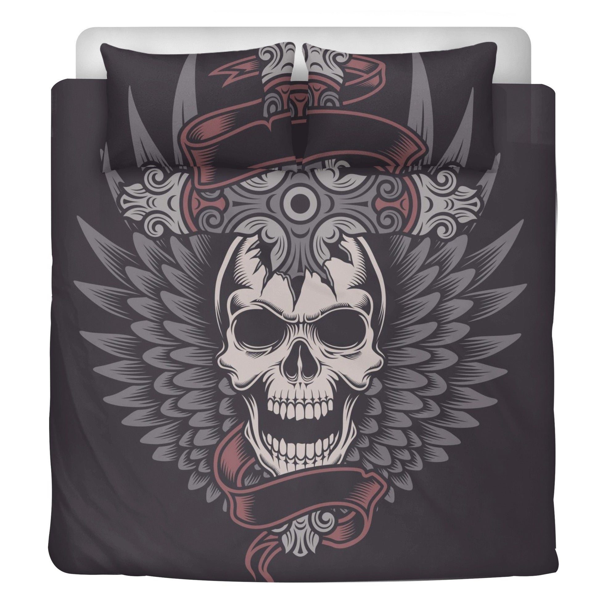 4 pcs Grim reaper pillowcase, skeleton duvet cover queen king, reaper skull bedding set, floral skull comforter, death skull bedding set king queen, skull in fire bedroom decor, punisher skull comforter set, skeleton bedroom decor, Spooky Halloween duvet cover queen king, dark horror duvet cover queen king Washable and durable;Close skin fabric;Non-irritating;Good moisture absorption and breathability; Made of polyester Product includes one zippered duvet cover, one sheet and two pillowcases, inserts not included. Feature:Healthy Printing and Dyeing Care Instruction: machine washable use a mild detergent. Thread Color is white. Custom area is Single-sided printing. This product is made on demand. No minimums. Multiple shipping options available, and cost varies on time efficiency. Size unit inch Size_Detail_____UST__________USF__________USQ_________USK___________USC Quilt Cover_____67.7x85.8___79.9x89.8___89.9x89.9___102.4*90.6___103.9x94.1 pillowcase______19.7x28.3___19.7x29.5____19.7x29.5_____20.1x35.4____20.1x35.8 Sheet___________66.9x90.6___82.7x90.6___90.6x98.4___98.4x106.3___92.1x98.4 ======== All products in our store are only manufactured upon receiving an order from the customer. Please carefully review the product description and dimensions in the illustrative images before placing an order. The following cases are not eligible for return/exchange: 1. The product you receive matches the description. 2. The product dimensions (with illustrative images describing the dimensions) you receive match the description. 3. The product has been customized as per your request (e.g., printed with your name/image).