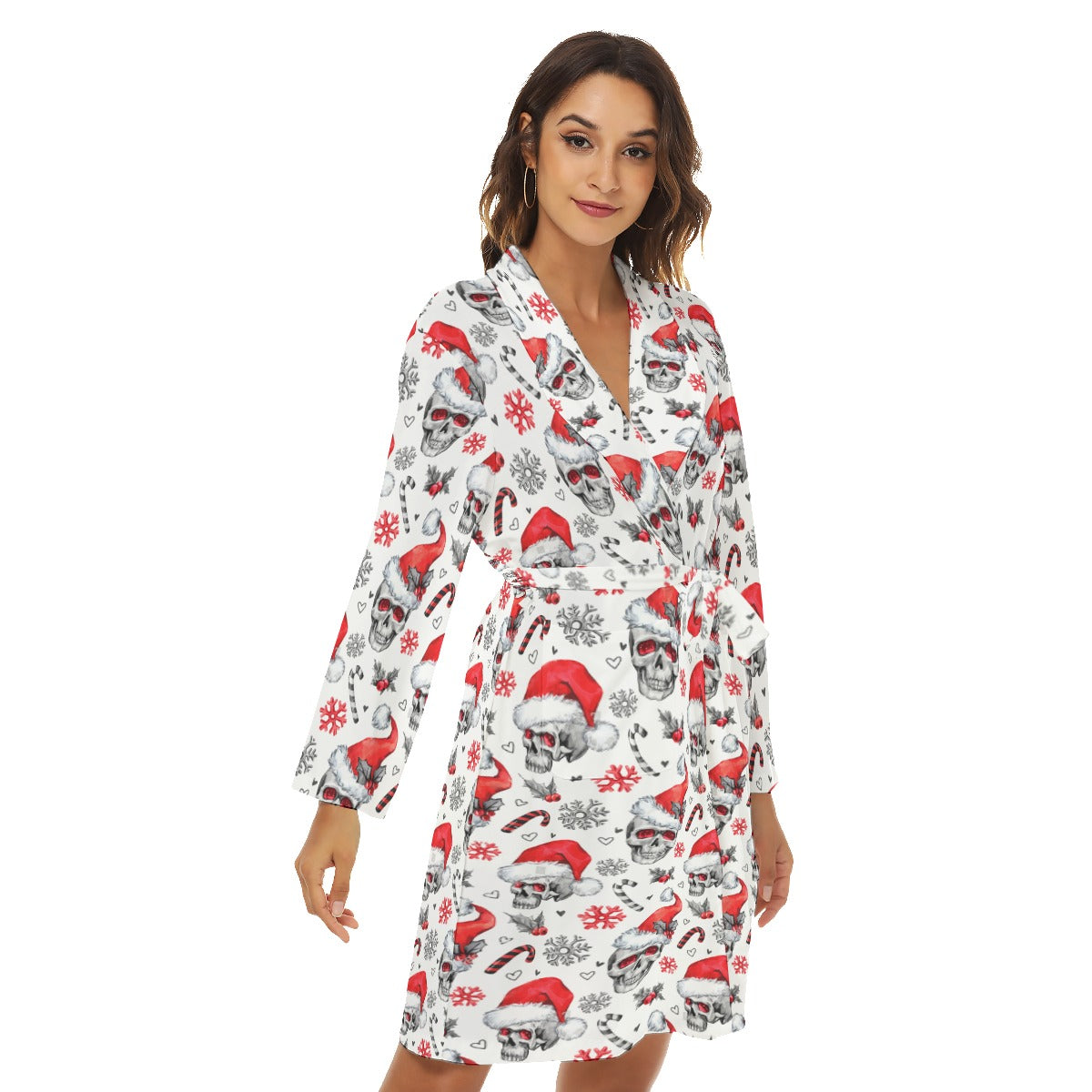Skull Santa Claus Women's Robe, Gothic skeleton santa claus bath robe