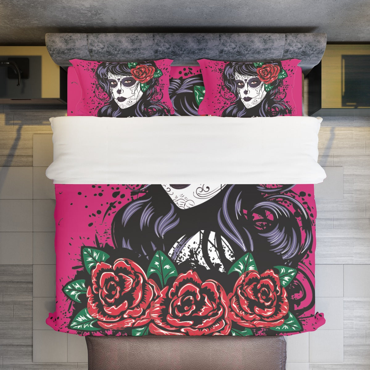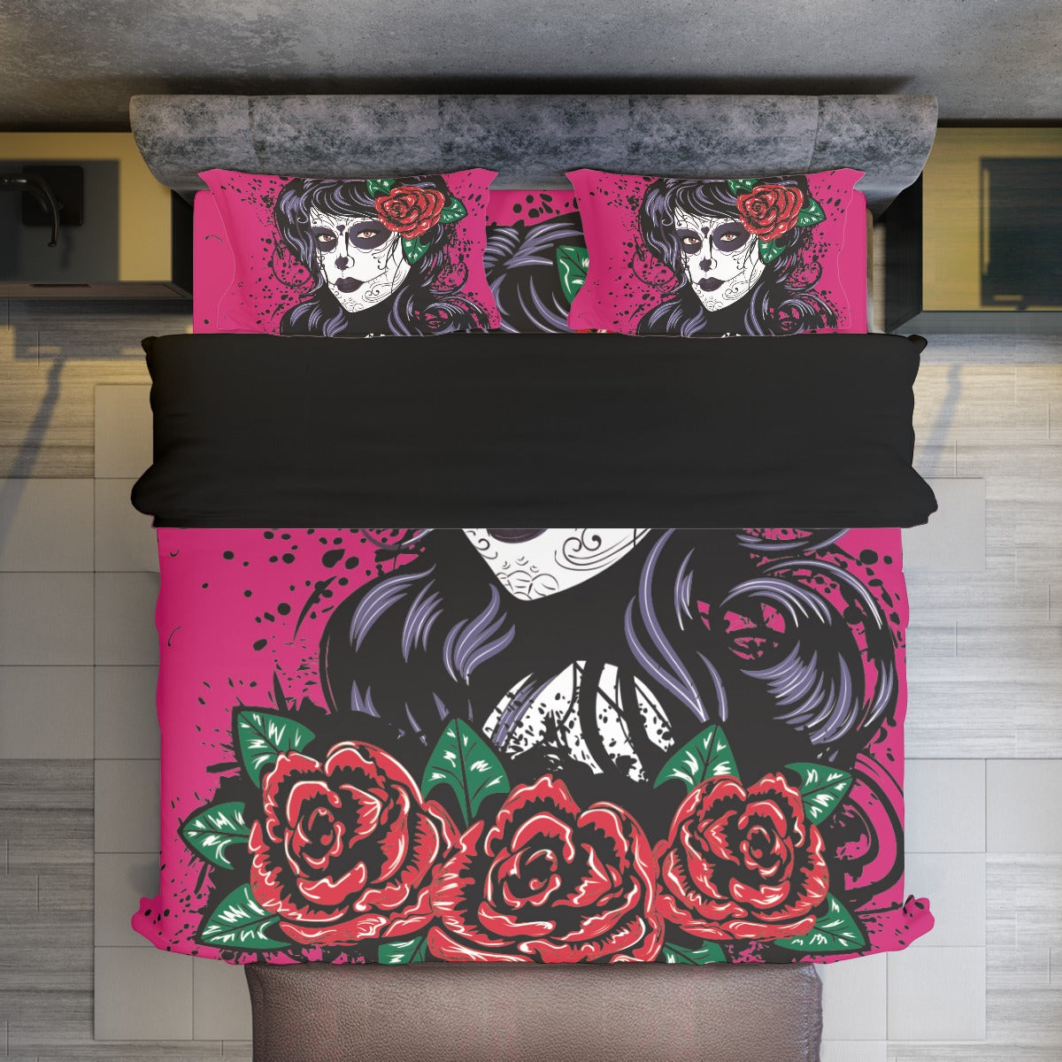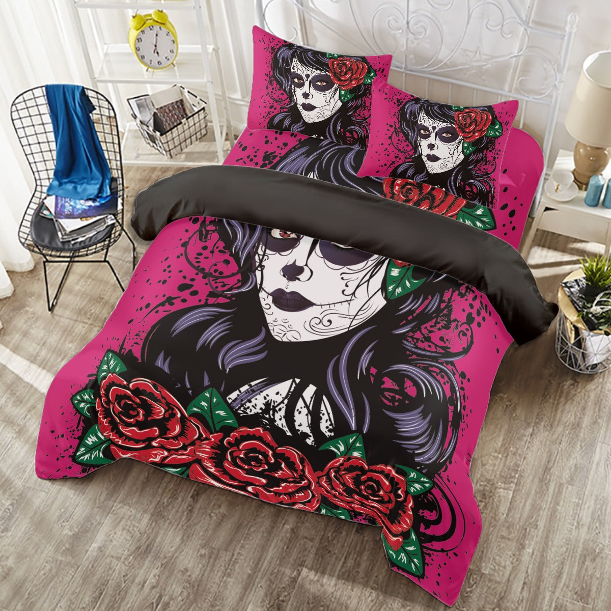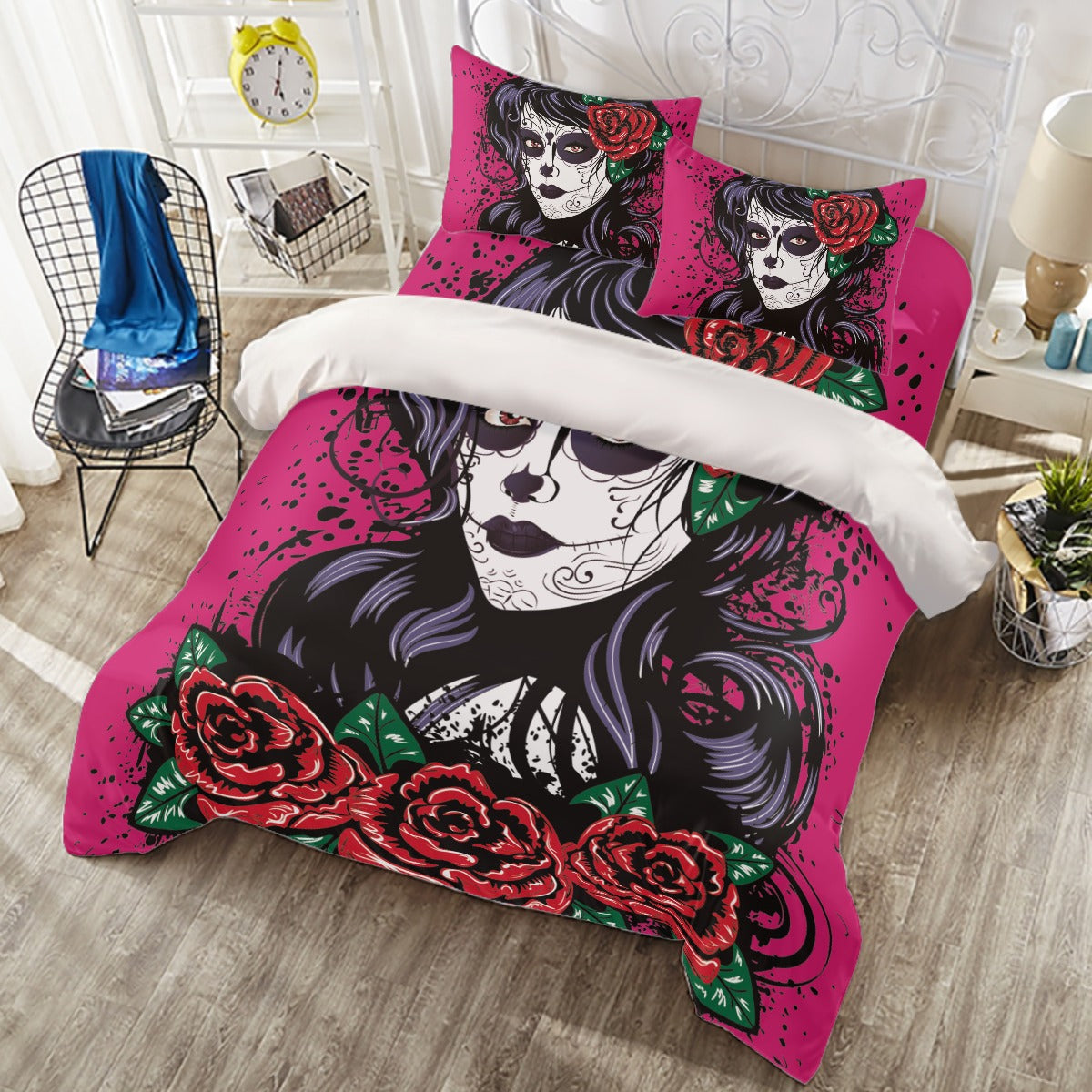 Sugar skull beautiful girl Four-piece Duvet Cover Set