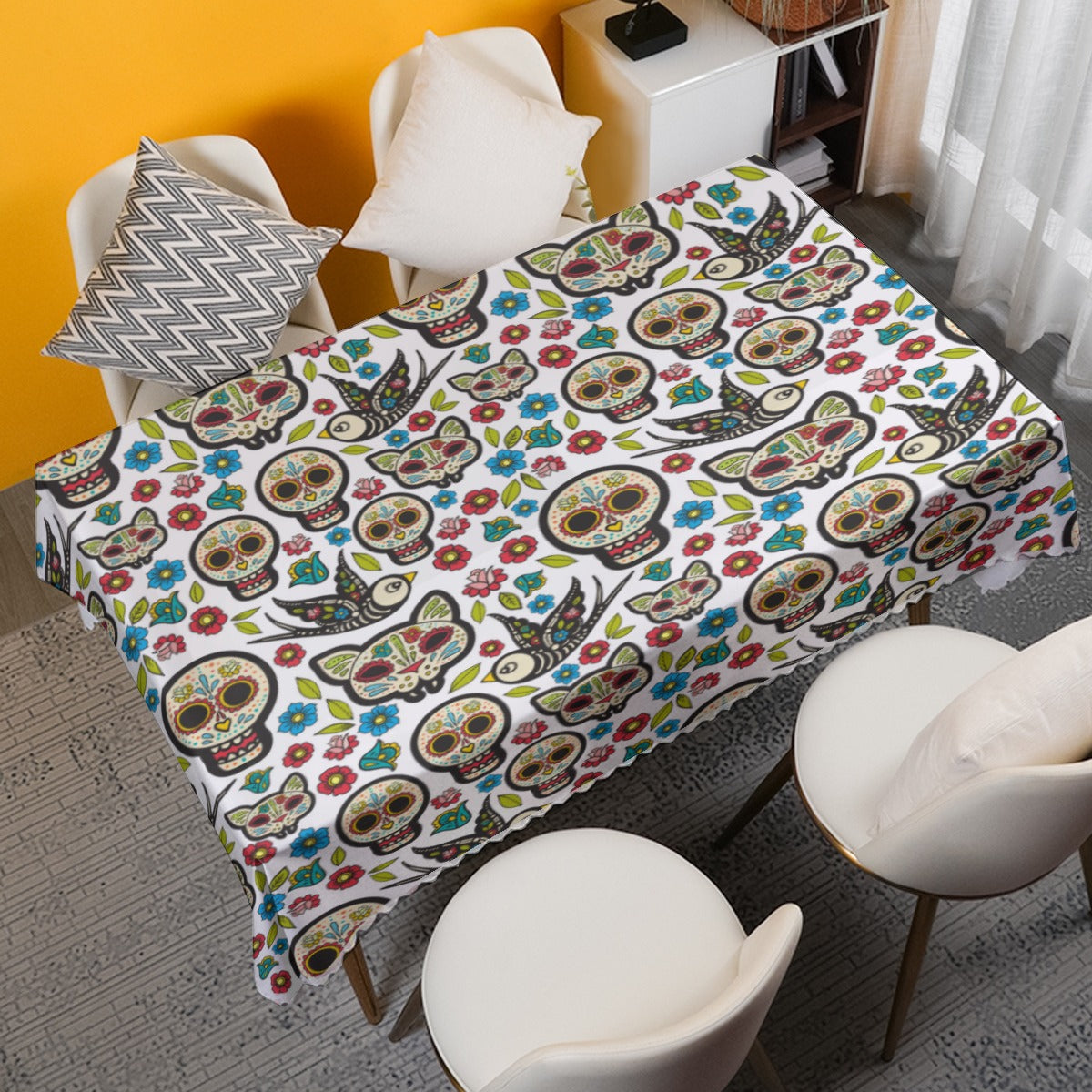 Day of the dead sugar skull Waterproof tablecloth | Square 180(gsm), dia de los muertos mexican skull tablecloth table runner