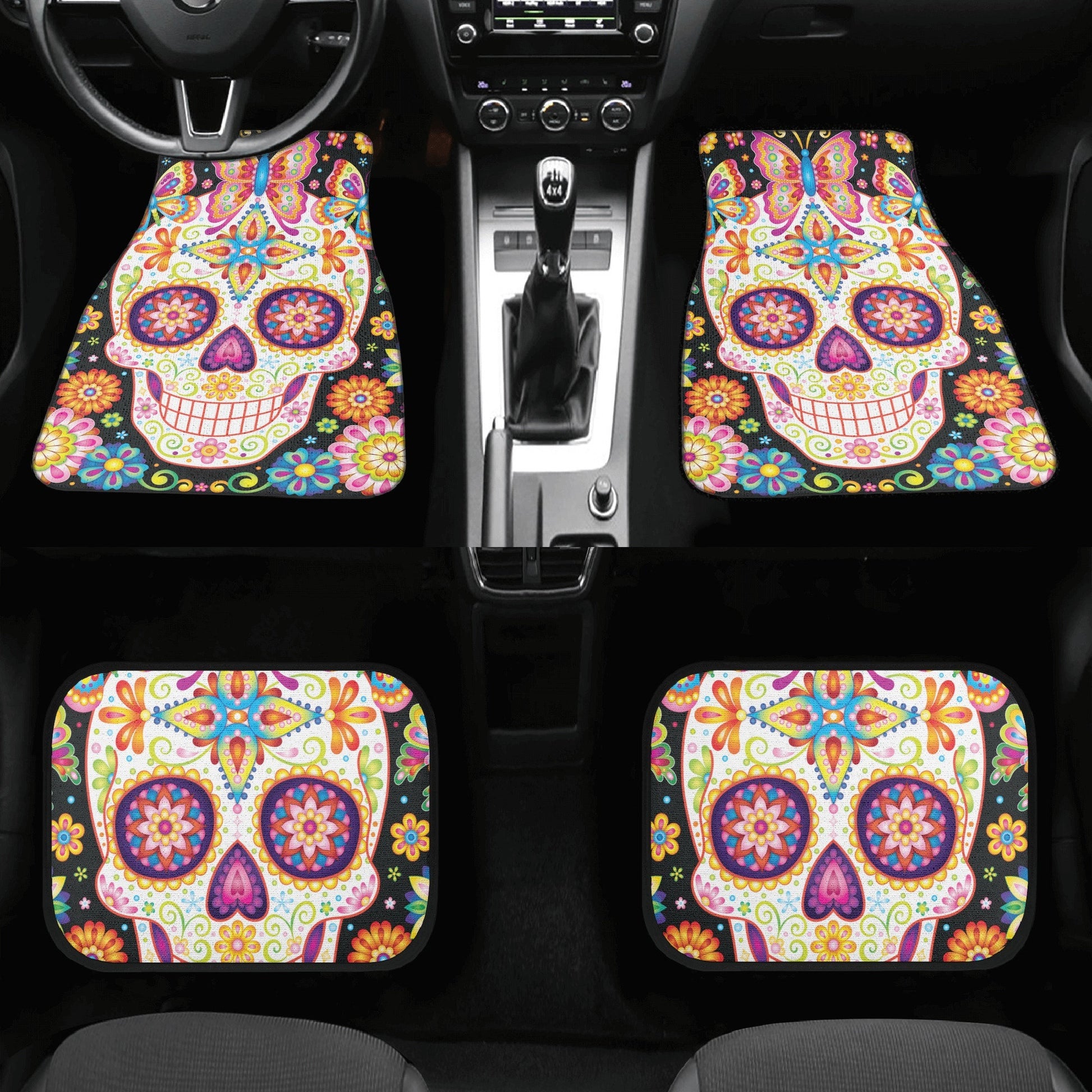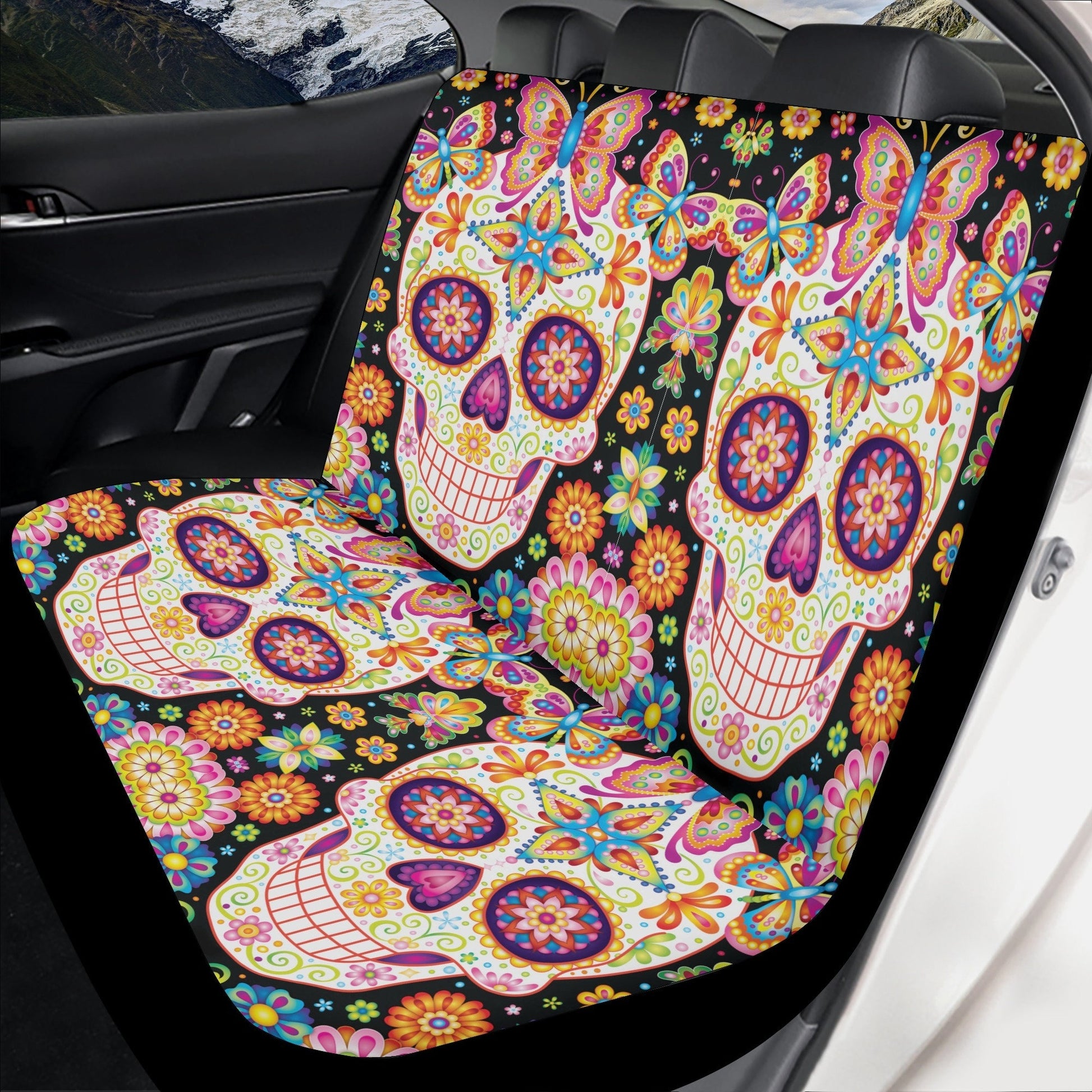 Sugar skull seat cover for car, day of the dead car seat cover car mat, Calaveras mexican skull car seat protector skull seat cover for car