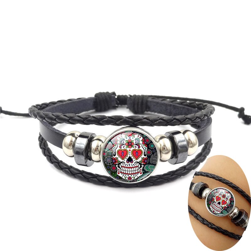 Sugar Skull Snap Button bracelet For Women Men 18mm Glass