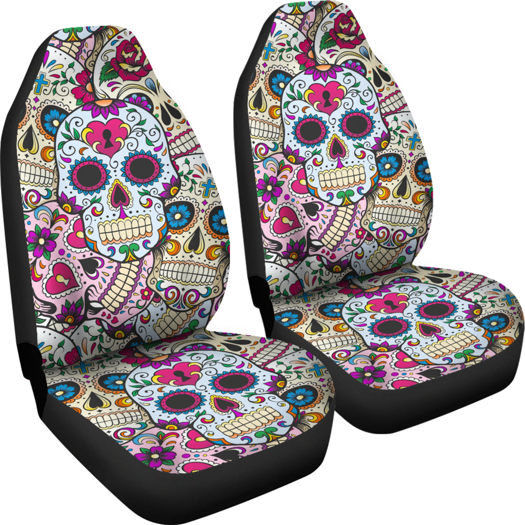 Set of 2 Sugar skulls - Day of the dead car seat covers