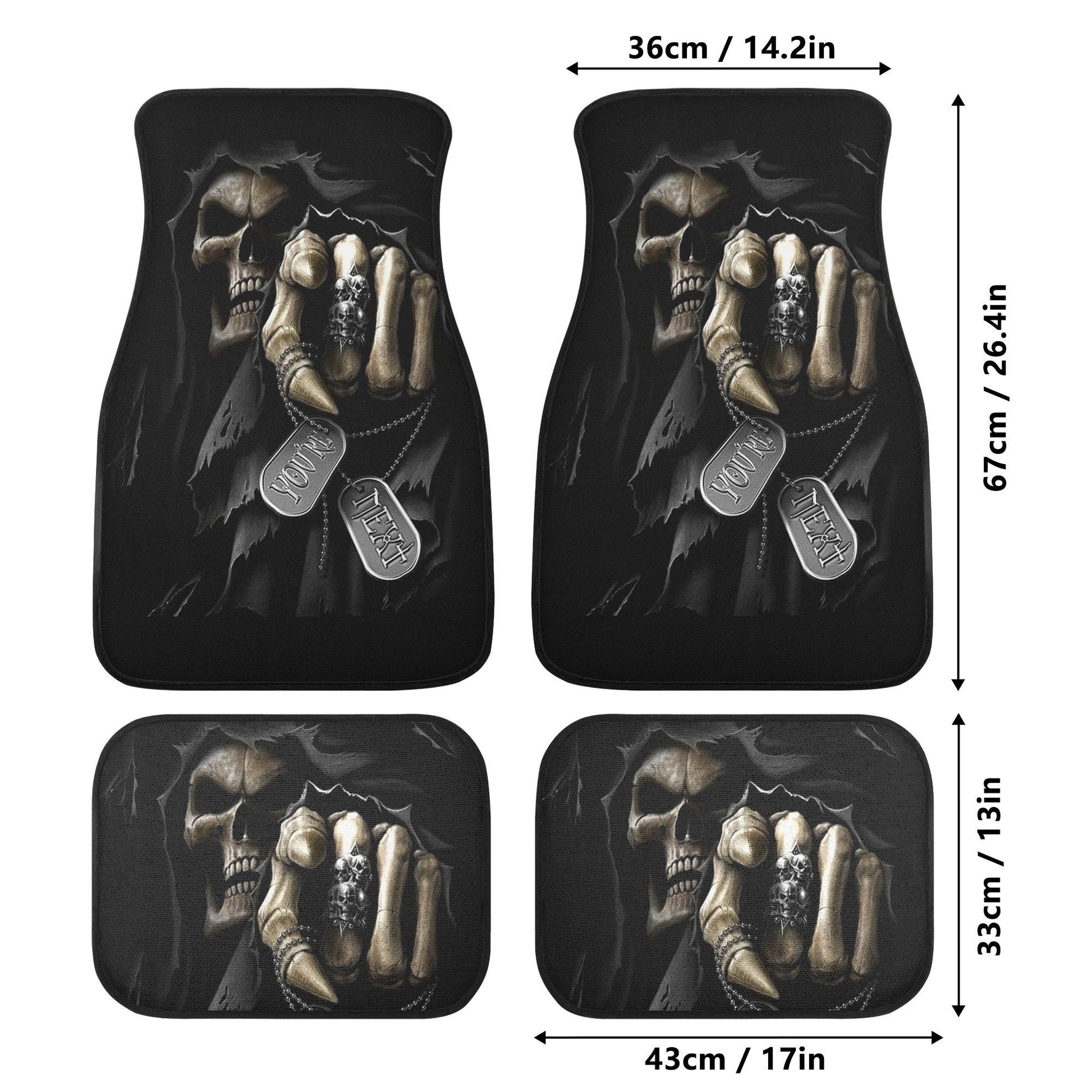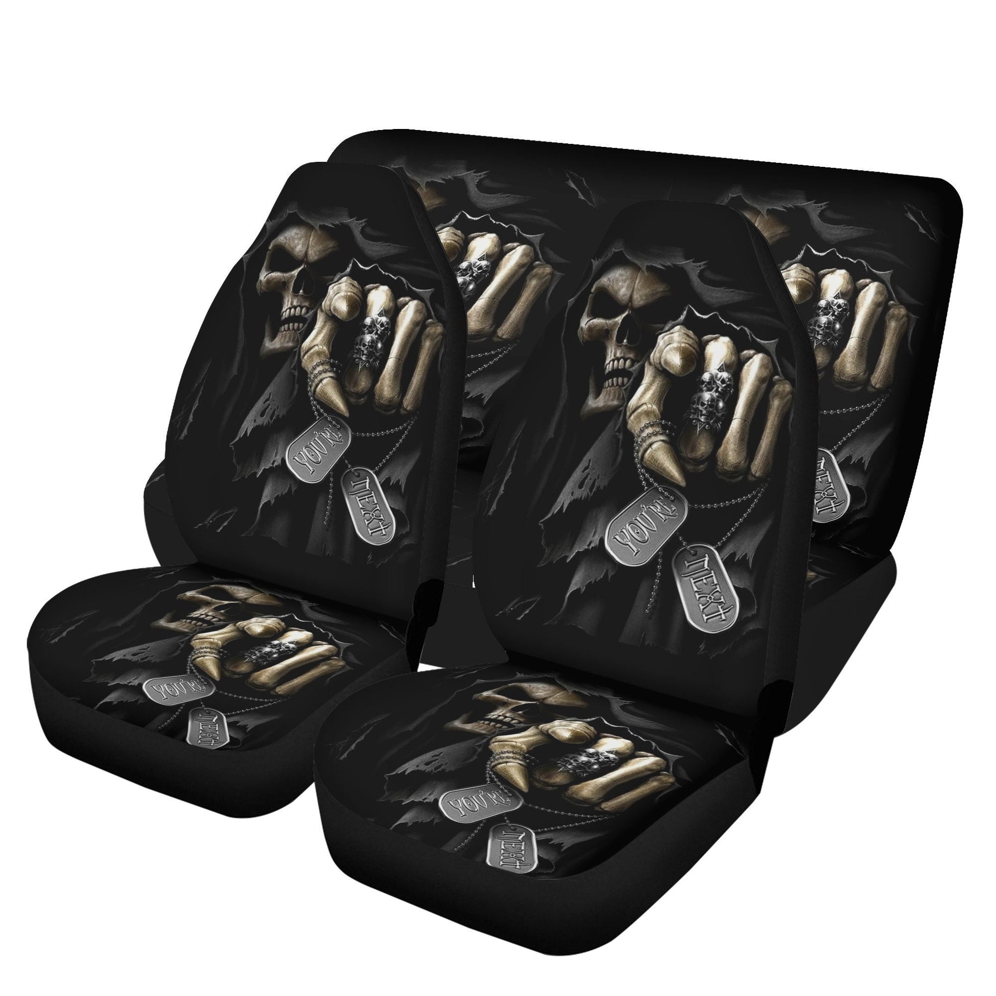 You're next Grim reaper Skull Car Seat Cover car mat Halloween seat cover mat skull car seat protectorskel eton car mat skull seat protector Constructed with high quality polyester micro-fiber fabric for maximum durability and comfort. Add style to your seats while protecting them from spills, stains, tearing, fading and more. Designed for quick and easy installation on most car and SUV bucket style seats - no tools required. Elastic backing and fastening system ensures a snug and secure universal fit on most standard car and SUV seats. Not for use on seats with integrated airbags, seatbelts or armrests. Size: Front seat cover: 19 in x 20 in x 31 in x 18 in (please see photo for detail) Back seat cover: 23 in x 30 in x 47 in (please see photo for detail) ==== Car mats All of our Front And Back Car Mats are custom-made-to-order and handcrafted to the highest quality standards. Add style to your car while keeping your floors clean and protected! Features a durable and easy-to-clean custom print constructed from a waterproof polyester material. Rubberized backing with black finished edges ensures a secure grip and skid-free placement. Keep your car floors protected from dirt, spills and daily wear and tear with these stylish custom printed car floor mats! Size: Front mat: 26in x 17in Back mat: 13in x 17 (see detail in product images) ======== All products in our store are only manufactured upon receiving an order from the customer. Please carefully review the product description and dimensions in the illustrative images before placing an order. The following cases are not eligible for return/exchange: 1. The product you receive matches the description. 2. The product dimensions (with illustrative images describing the dimensions) you receive match the description. 3. The product has been customized as per your request (e.g., printed with your name/image).