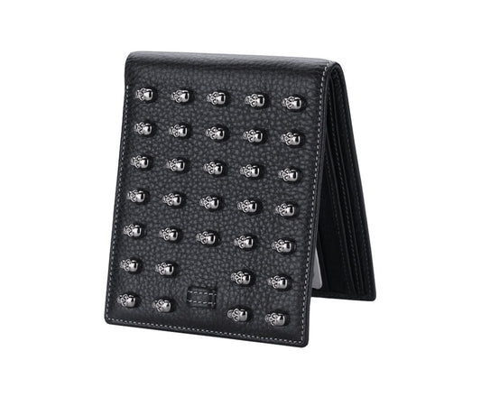 Leather Wallet for Men Black Steampunk Skull Wallets Short Men