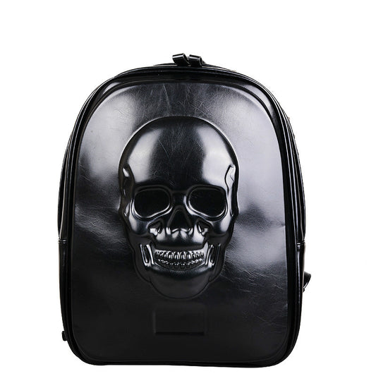 3D Embossed skull leather backpack rivets skull Laptop Travel Soft backpack