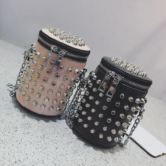 High-quality PU Leather Women bag Punk Rivet Bucket Shoulder bag