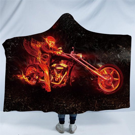 Skull Collection Hooded Blanket for Adults Flame Motorcycle Sherpa Fleece Wearable Blanket Throw Blanket Bedding