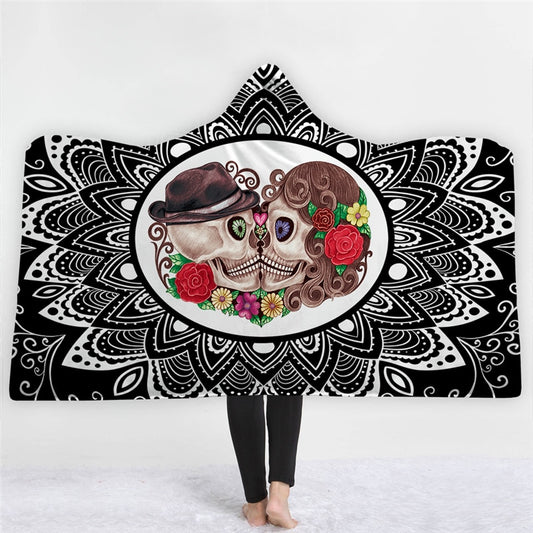 3D Printed Sugar Skull Hooded Blanket Winter Warm