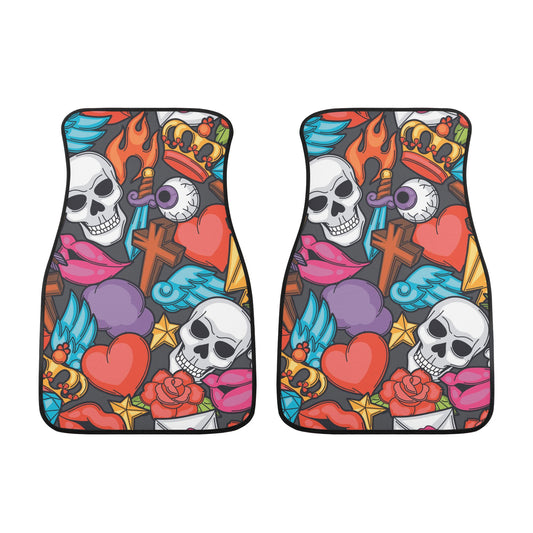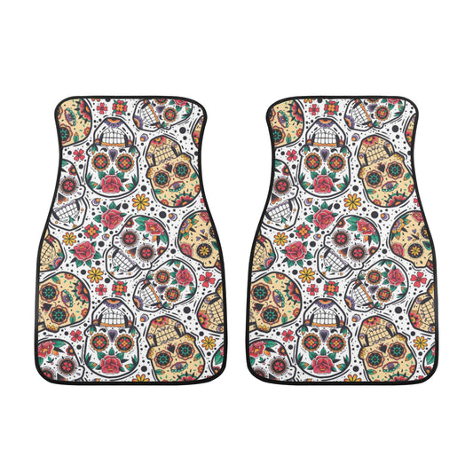 Sugar skull Mexican calaveras pattern Back and Front Car Floor Mats