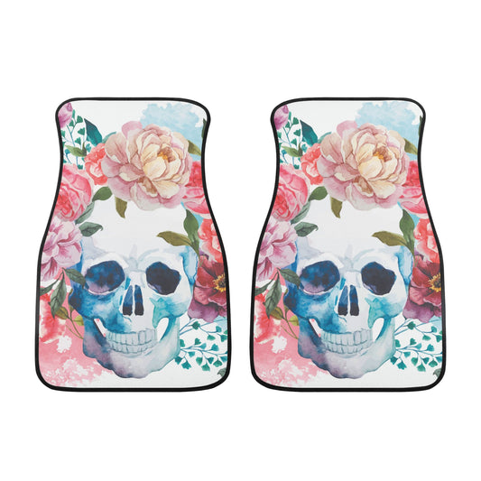 Floral sugar skull pattern Back and Front Car Floor Mats