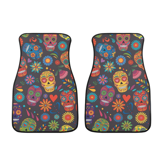 Day of the dead sugar skull Back and Front Car Floor Mats