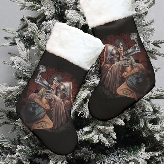 Grim reaper with girl Christmas Socks, Gothic skeleton skull christmas Xmas socks stockings