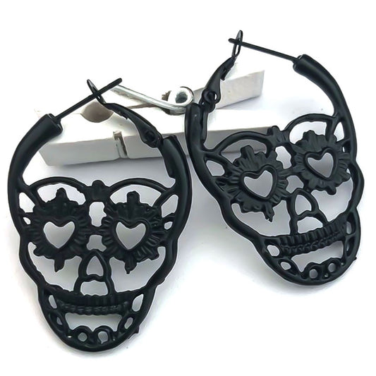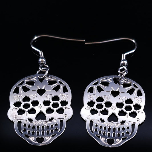 Fashion Hollow Stainless Steel Statement Earrings for Women Skull Silver
