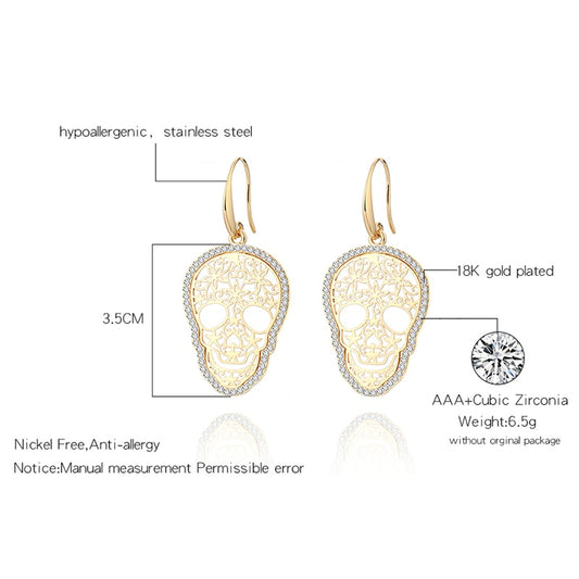 Gold Color Hollow Skull Earrings Trendy Shining CZ Crystal Drop Earrings