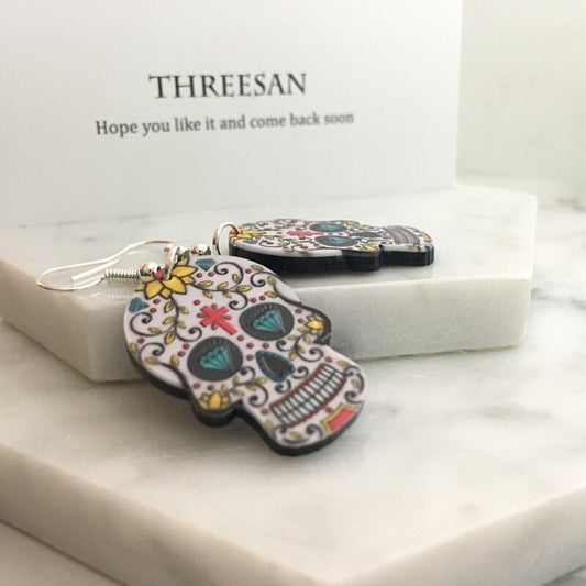 Sugar Skull -sweet whimsical skull Earrings Celebrate Mexican Day of the Dead