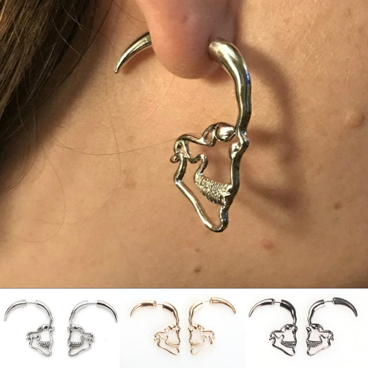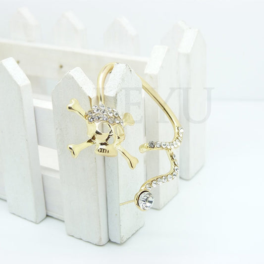 Nightclub Gothic Punk Skull Ear Cuff Earrings for Women Gold-Color Skeleton