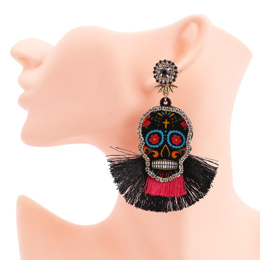 Fashion Women Multicolored Skull Pendant Fringed Earrings