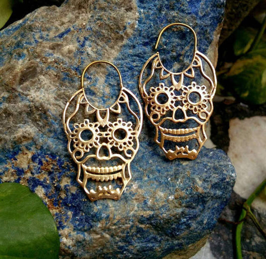 SKULL HANDMADE TRIBAL BRASS BOHO HOOP GYPSY EARRINGS GAUGES GIRLS