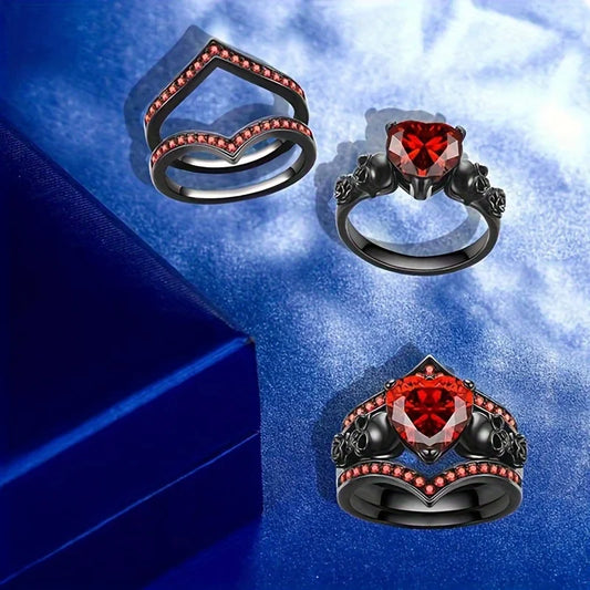 Gothic Style Rings Plated Inlaid Heart Shape Zircon Horror Skull On The Band Black / Red / Purple Just Pick One Halloween Decor