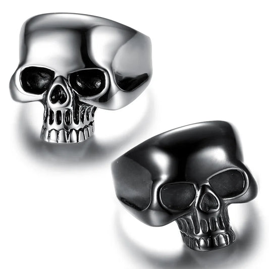 Gothic High Polished Vampire Skull Rings For Men Boys Stainless Steel Heavy Metal Skull Ring Punk Motorcyclist Jewelry Gifts