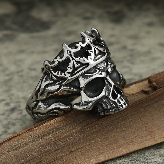 Vintage Gothic Crown Calvarium Skull Punk Ring Men 316L Stainless Steel Halloween Fashion Jewelry Gift For Boyfriend Size 7-13