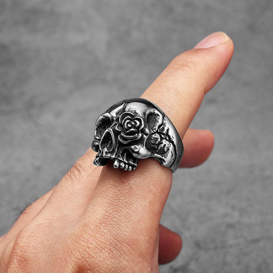 Rose Skull Stainless Steel Men Rings Punk New In For Male Women Fashion Jewelry Creativity Gift Wholesale Dropshiping