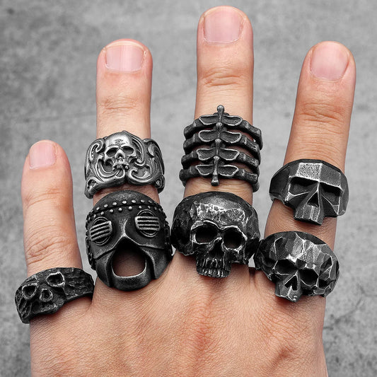 Retro Geometric Skull Men Rings Stainless Steel Women Jewelry Punk Retro New In Rock Fashion Accessories Gift Wholesale