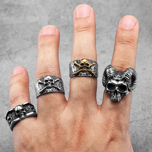 Skull Head Men Rings Stainless Steel Women Jewelry Vintage Punk Rock Cool Stuff Fashion Accessories Halloween Gift Wholesale