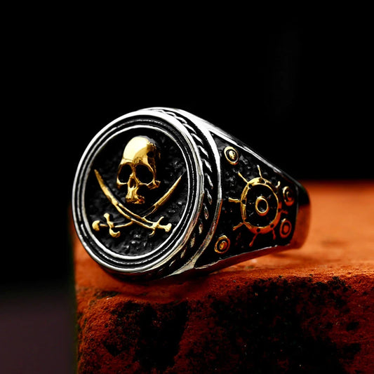 Viking Pirate Signet Double Knife Skull Rings for Men Stainless Steel Viking Ring Biker Amulet Vintage Jewelry Gift Dropshipping