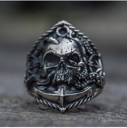 Gothic Skull Ring Unique Octopus Anchor Adsorption Compass Skull Biker Ring