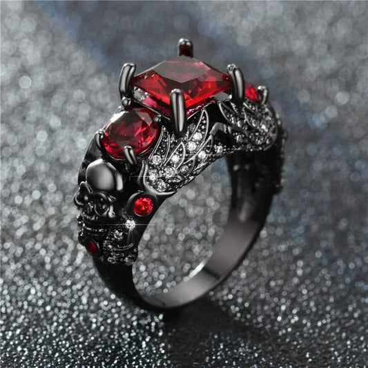 Gothic Jewelry Purple Red Black Crystal Unique Black Skull Rings for Women Halloween Christmas Gifts