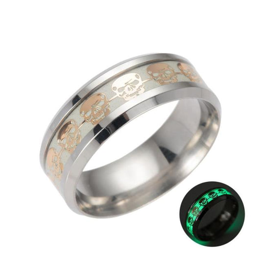 Stainless Steel Punk Skull Luminous Rings for Women Men Fluorescent Glowing Inlay Skeleton Jewelry