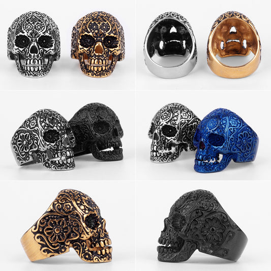 Stainless Steel Gothic Skull Bones Men Rings Vintage Carving Domineering Gothic Rock