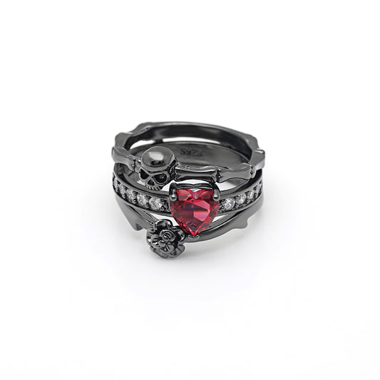 Gothic Skull Finger Silver Color Wedding Rings Set For Women Girl Red Heart Crystal CZ Rose Flower Trendy Jewelry Gift Rings