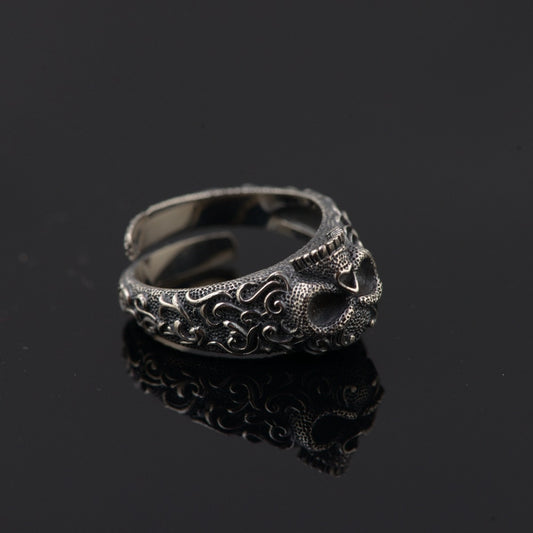 Real 925 Sterling Silver Skull Ring Men Adjustable Dragon Ring