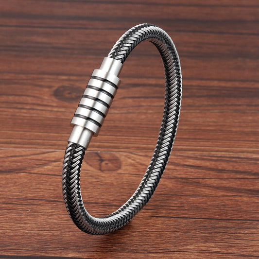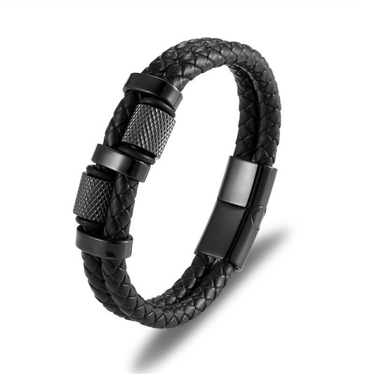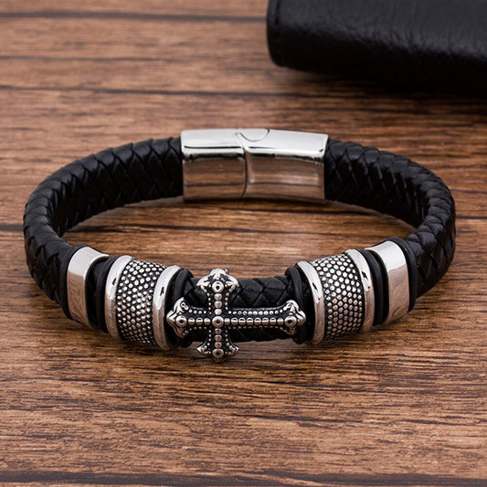 Fashion 2019 NEW Men Jewelry Black Leather Bracelet Stainless Steel