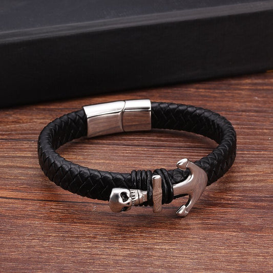 Snake Chain Leather Bracelets Rope Chain with Skeleton Pattern