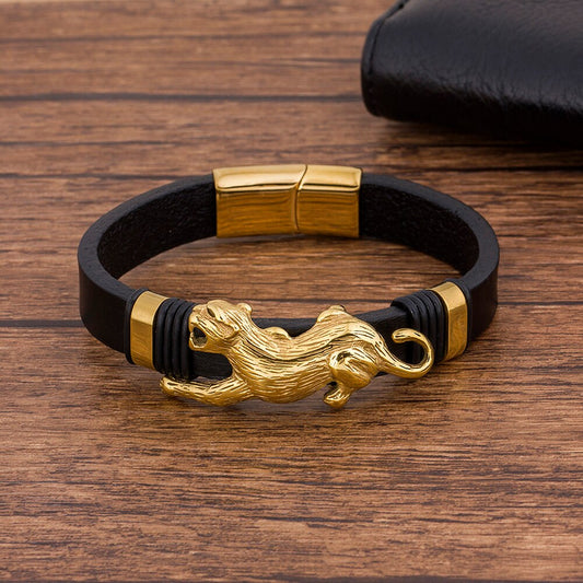 Handmade Braided Chain Leather Man Bracelets Leopard Anymal