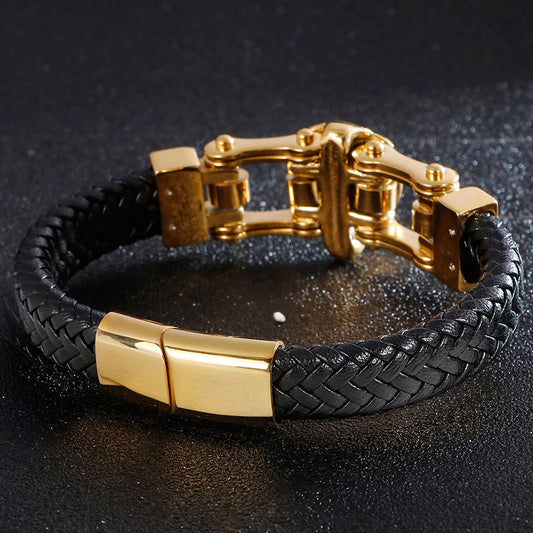 Punk Genuine Leather Bracelet Double Layer Black Gold