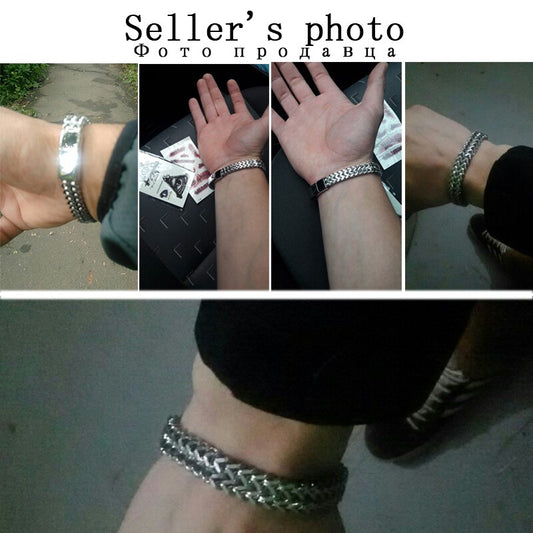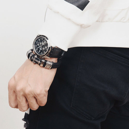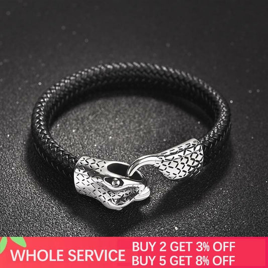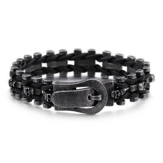 Unique Punk Leather Bracelet Men New Stainless Steel