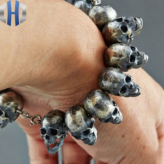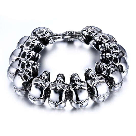 Skull Links Chain Bracelet in Silver Color Stainless Steel Large Heavy Gothic Punk