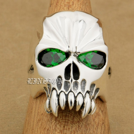 US Size 8~15 Huge Heavy 925 Sterling Silver Green CZ Eyes Skull Mens Biker Rock Punk Ring