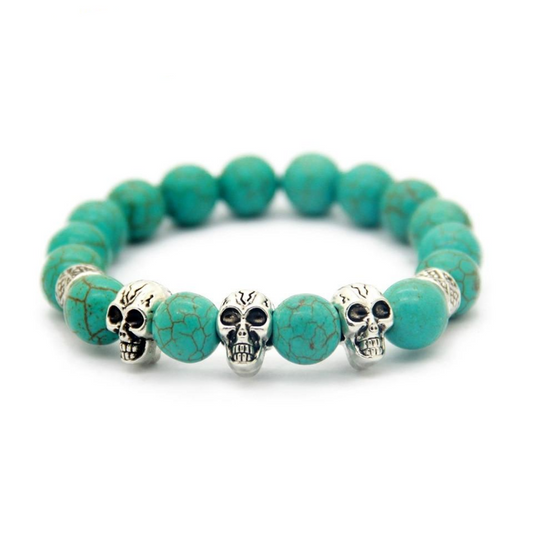Retail New Jewelry 10mm High Quality Created Stone Beads Antique Silver Color Skull Elastic Bracelets