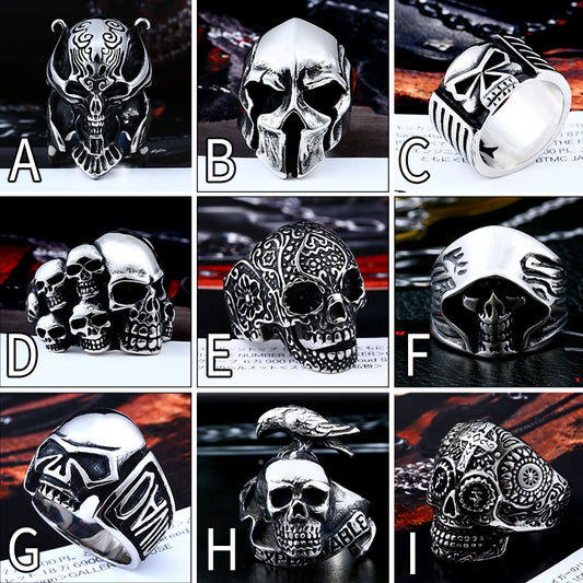 Vintage Punk 316L Stainless Steel Rings Viking Skull Skeleton Men Ring Tibetan Gothic Rock Punk Jewelry Size 9-13