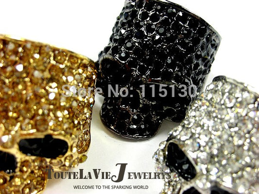 Brand Skull Rings For Men Rock Punk Unisex Crystal Black/Gold Color Biker Ring Male Fashion Skull Jewelry Wholesale