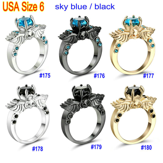 Brand New Arrival Creative Black Silver Gold colour Wing Skull Ring with AAA Zirconia Crystal Plated Party Jewelry