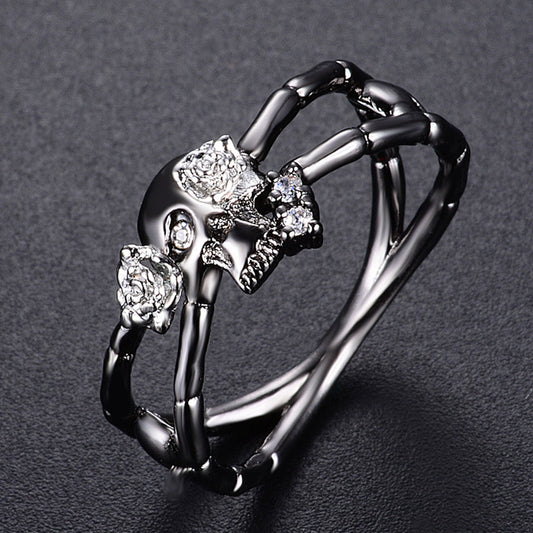 Romad New Popular Gun Black Cross Skull Rose Flower Ring for Women Gothic Engagement Wedding Party Ring Punk Jewelry