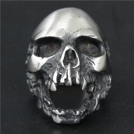 Size 7~15 Heavy Dull Polishing Death Skull Ring Big Month 316L Stainless Steel Jewelry Real Cool Skull Biker Ring