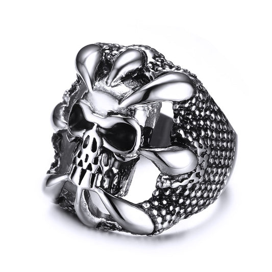 Men's Sliver Stainless Steel Dragon Claw of the Beast Skull Band Rings for Men Vintage Punk Biker Jewelry Bagues US Size 7-12